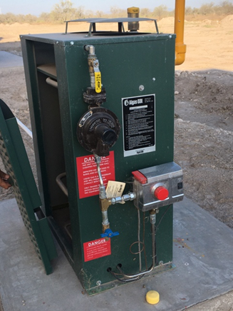 Si en un invernadero están instalados 10 calefactores con un consumo de 16.5 lts/hora de Gas LP la demanda total por hora es de 165 lts por 8 horas en promedio de consumo por día es de 1,320 lts/día. Se requeriría un tanque principal de 2,800 lts para un consumo de 2 días y que el proveedor de gas tenga la disponibilidad de suministrar oportunamente el gas cada 3er día.